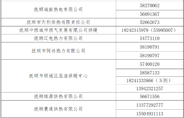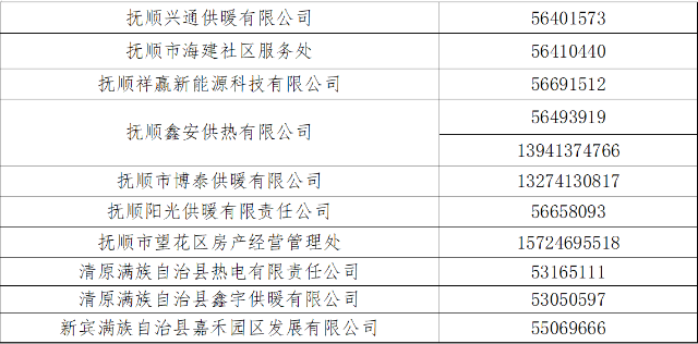 尊敬的抚顺市广大热用户: