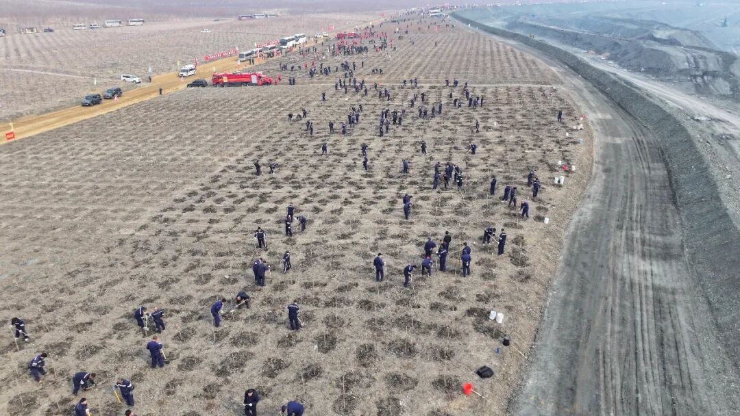 遵循“生态恢复—绿色矿山—景观提升—文化弘扬”的治理模式,西露天矿生态修复工作稳步推进。截至2025年年底,矿区已累计栽植各类苗木407万余株,完成复绿面积12240余亩,复绿面积占矿坑总面积约75%。此次义务植树活动栽植的数万株树苗迸发出勃勃生机,与矿山生态治理成果交相辉映。