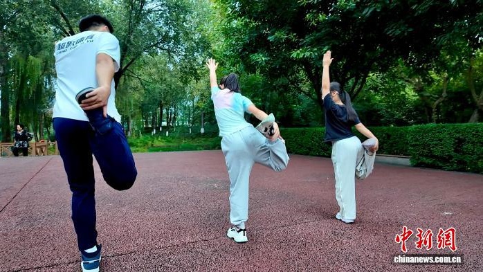 在成都某公园里,上门体育教练张意带着小学员训练。陈选斌 摄