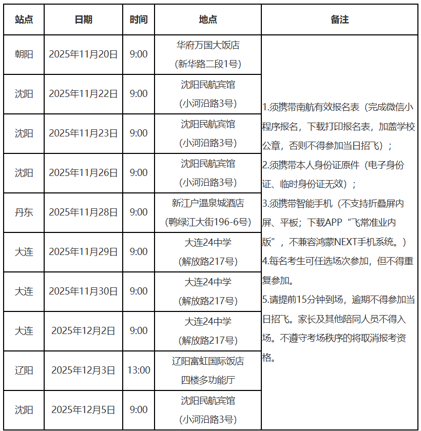特别提醒:1.报考中国民用航空飞行学院本校和国航,须参加中飞院-国航联合初检,报考南航须参加南航初检,且初检结论中飞院-国航与南航不通用。2.行程和要求详见附件3和附件2,参加中飞院-国航联合初检的请下载附件3初检表,按要求填写好后带到现场;参加南航初检的请按照附件2报名方式提前完成报名。