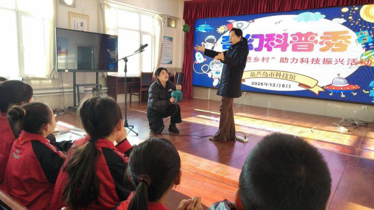 “小朋友们,你们猜一猜静电有多少伏?”“你们相信空气也能变成炮弹吗?”……12月5日,葫芦岛市科技馆“科普大篷车”开进建昌县小德营子乡中心小学,一场融合空气炮、静电魔法与气压奥秘的奇幻科普秀,让群山环抱的校园沸腾如科技嘉年华。