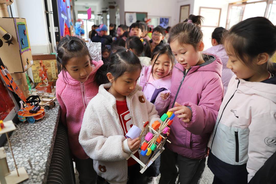 展览期间,各年级学生在老师的组织下有序参观。孩子们或驻足在精美的凤冠前仔细端详,或在科技作品前兴奋地探讨原理,眼神中充满了好奇与自豪。此次活动不仅是对学生寒假实践成果的生动检阅,更是一堂融传统文化熏陶与科学创新启蒙于一体的综合实践课,在孩子们心中深深播下了文化自信与探索精神的种子。(记者:尹浩)