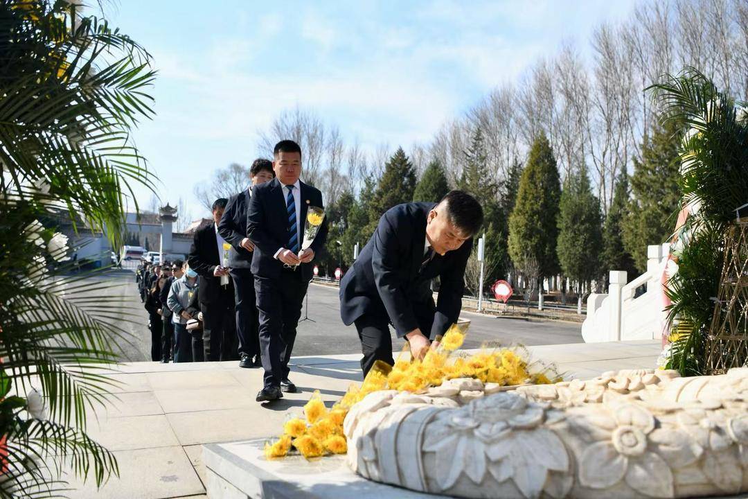 祭扫现场庄严肃穆,全体人员整齐列队,神情凝重。伴随着低沉的哀乐,大家肃立默哀,向英雄烈士致以最崇高的敬意与深切哀思。随后,各界代表缓步上前,向烈士纪念碑敬献花篮、鲜花,仔细整理花篮缎带,寄托对先烈的无限追思。