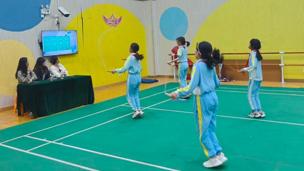 杭州市胜利小学教育集团体育教师张凯站在设备旁,看着学生轮流完成动作。屏幕上,数据不断刷新,排名实时更新。“像跳绳这样的项目,以前比较枯燥,现在可以比赛、可以互动,学生的热情明显提高了。”
