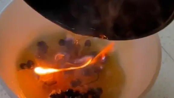 近日,天津一女士在家炸花椒油时,油锅高温后突然起火,因操作不当,她将热油倒入碗中,碗无法承受瞬间的高温与冲击当场破裂,导致热油飞溅,上演“碗炸油溅”的惊险场面。