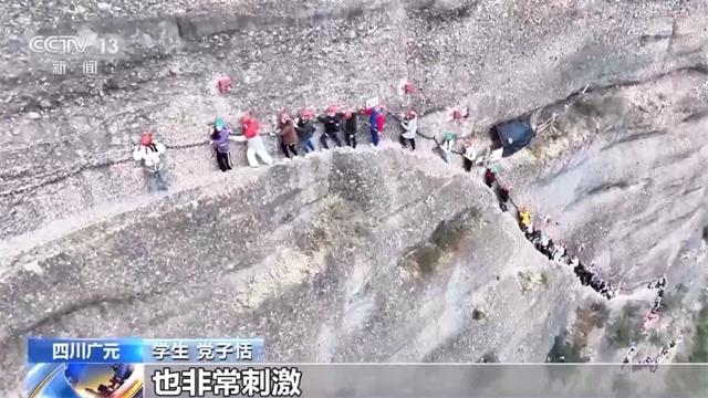 学生党子恬说:”我会背《蜀道难》,之前妈妈让我背过。《蜀道难》里面的惊险刺激的景象,在这里看到那个悬崖峭壁,也非常刺激。“