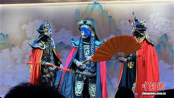全俊华在舞台上进行创新变脸演出。记者 何浠 摄