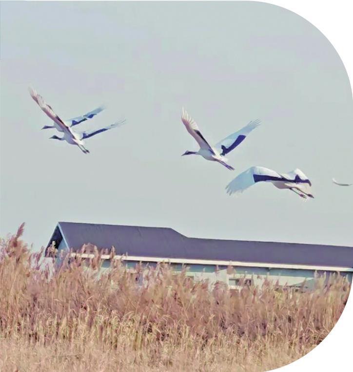 辽河口国家级自然保护区是东亚—澳大利西亚候鸟迁徙路线上的关键停歇站,是丹顶鹤大陆种群南北迁徙的最集中的停歇地、越冬的最北限、我国境内第三大自然越冬地,是辽河口国家公园候选区。近年来,盘锦市持续加大湿地生态修复力度,推进丹顶鹤人工繁育与野化放归工作,累计野化放归丹顶鹤280只,部分已成功融入野生种群并参与野外繁殖,为野生种群复壮注入源头活水。(徐刚 文 何玲玲 摄)