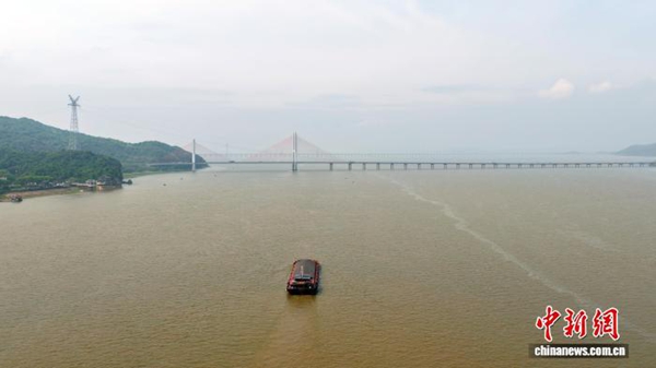 4月15日,航拍鄱阳湖湖口水域,船只往来通行。徐会刚 摄