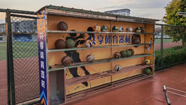 学校随处可见共享体育器材架