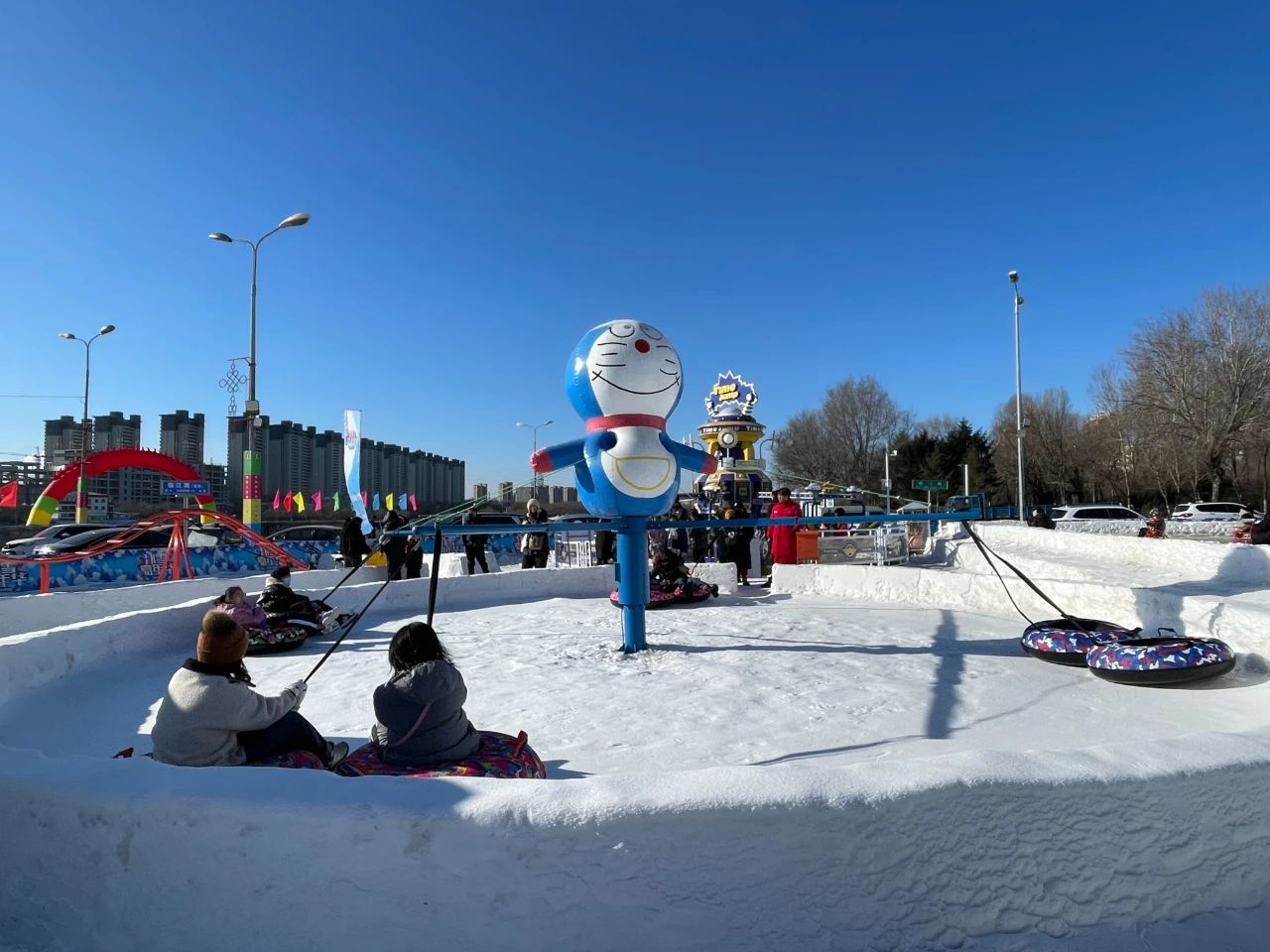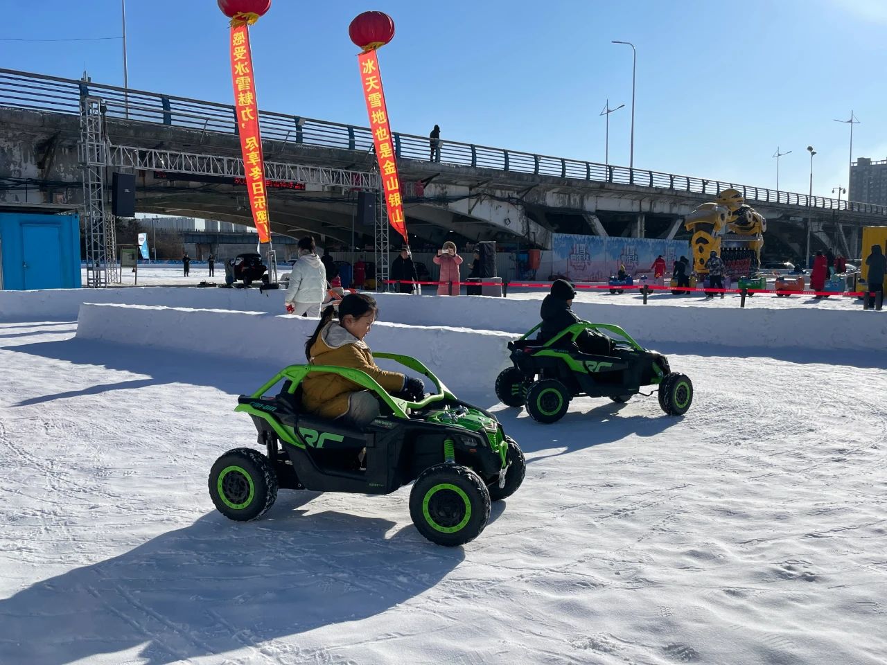浑河之上冰雪大世界:冰上卡丁,雪地摩托,碰碰球、冰车,雪圈、以及雪道大滑梯等20多个冰雪游玩项目。踏上冰面,体验家乡浑河独有的冰雪魅力,来一场家门口的冰雪之旅。