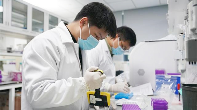 11月20日,在苏州一家生物制药公司,实验人员在提取信使核糖核酸。