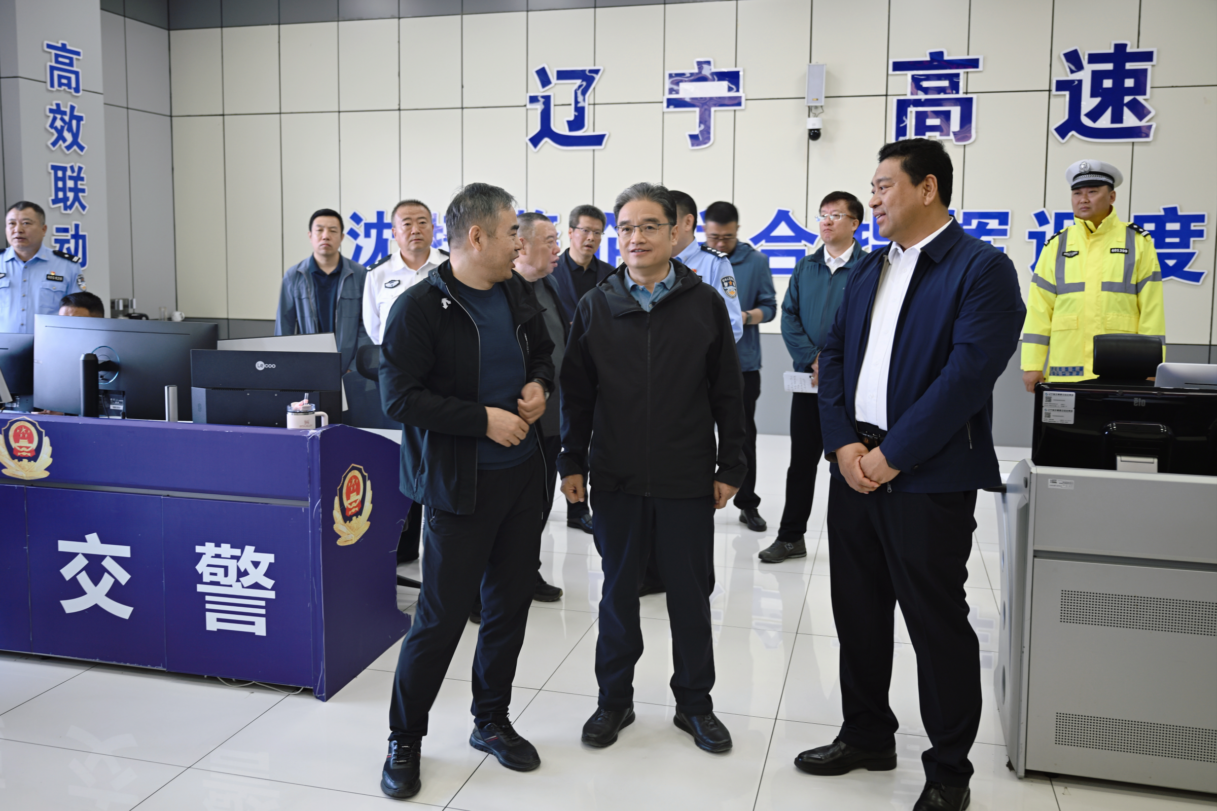在沈抚高速路警企联合指挥调度中心,高键详细了解保通保畅、应急处置等工作安排,通过实时监控察看高速路面车流情况及各收费站、重点易堵路段通行情况。他指出,假期人流、车流密集,道路交通压力大,公安、交通等部门要强化协同配合,提前研判交通形势,科学部署巡护力量,注重运用无人机等技术手段,加强重点时段、重点路段交通疏导,确保人民群众出行安全畅通。
