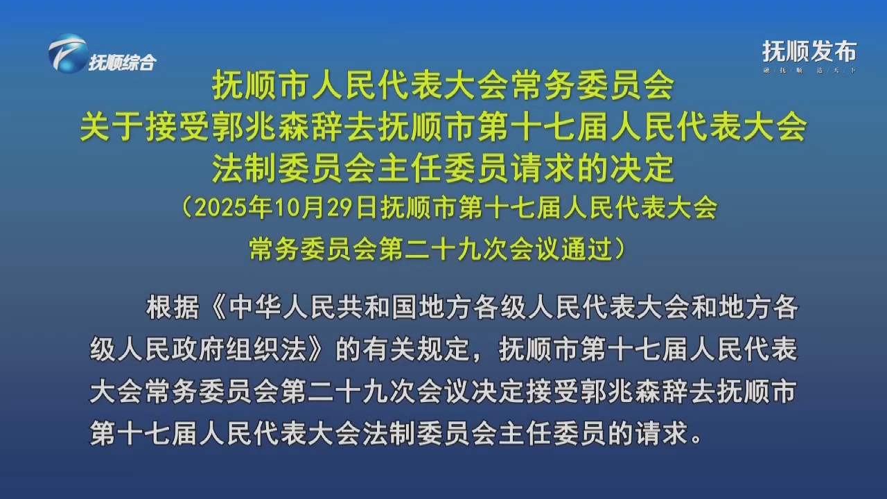 抚顺市人民代表大会常务委员会关于接受郭兆森辞去抚顺市第十七届人民代表大会法制委员会主任委员请求的决定