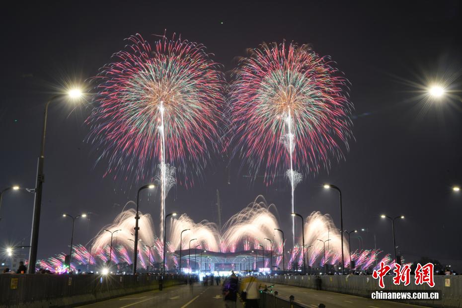 10月25日晚,第六届浏阳焰火大会(LFC)在湖南浏阳举行,来自美国、日本、匈牙利、比利时、瑞典、斯洛文尼亚六国的顶级焰火团队,展开烟花创意与实力的巅峰比拼。(记者:杨华峰)
