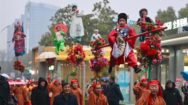 1月25日,“我们的节日——欢欢喜喜过大年”2026春节主题文旅活动在合肥市举行。图为肘阁抬阁巡游现场。