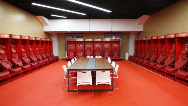 在工作人员的引领下,记者参观了体育场一楼的主队休息室、客队休息室、新闻发布厅、媒体工作室、会议厅、医务室、VAR室(录像回放)等专业赛事配套设施。在主客队球员休息室内,备有会议桌椅、储物柜、淋浴区、热身房、卫生间、按摩室等,营造出回家般轻松亲切的氛围。