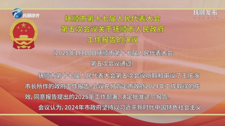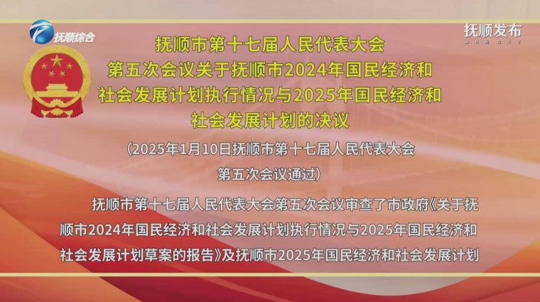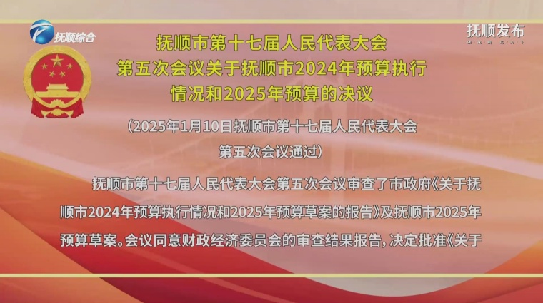 抚顺市第十七届人民代表大会第五次会议关于抚顺市2024年预算执行情况和2025年预算的决议
