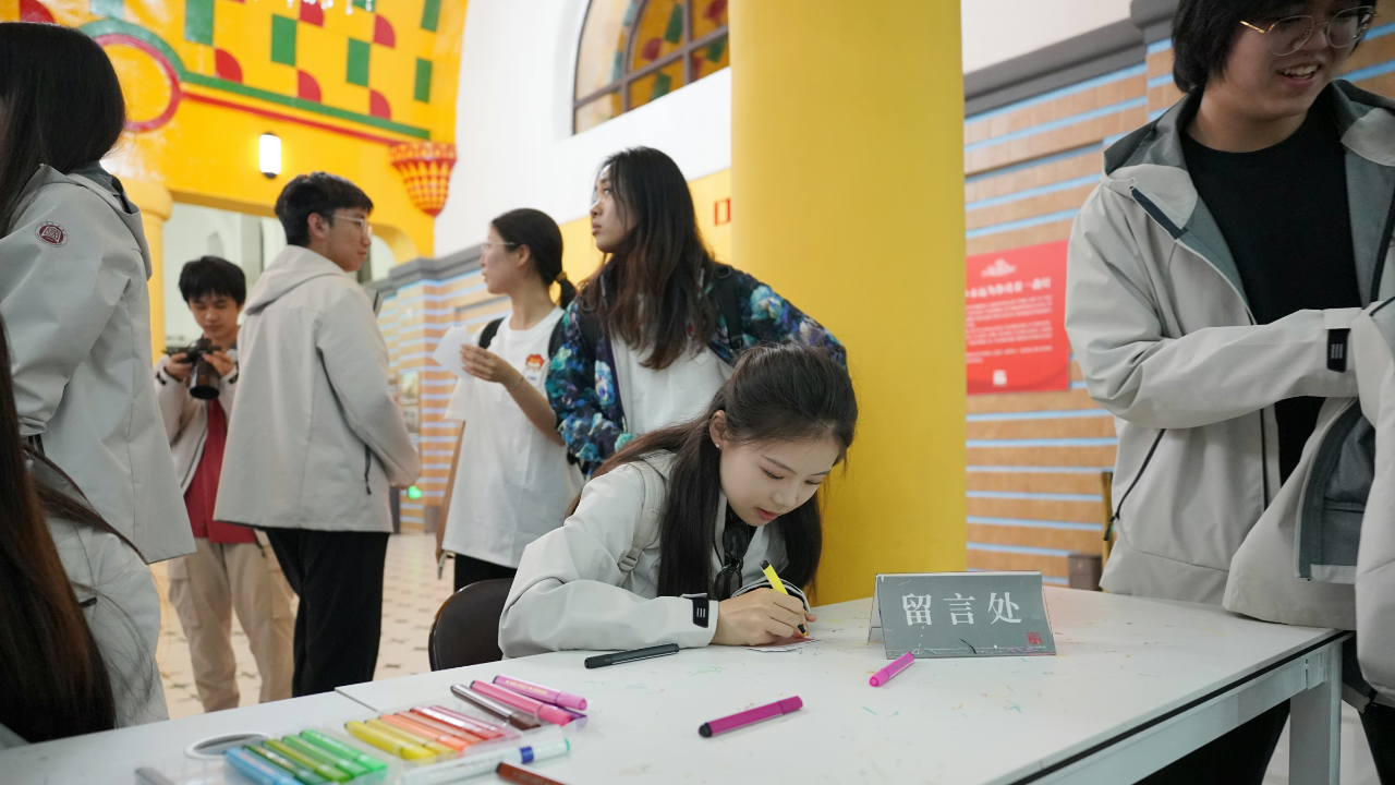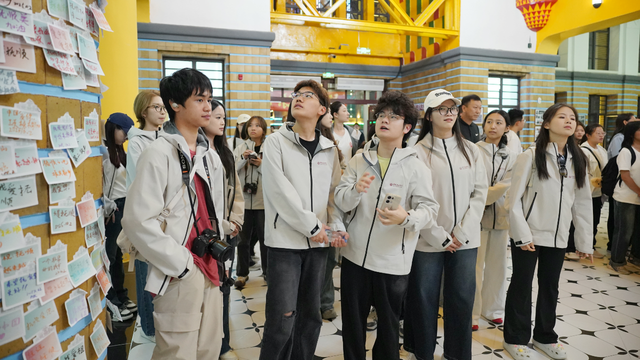 抚顺南站老火车站是一座百年老站,陪伴了几代抚顺人的成长,是无数抚顺人最难舍的城市情怀。同学们在这里,通过一件件老物件了解老站房的历史,触摸城市发展的脉络。留言墙上,学子们用深情的话语表达对抚顺发展的美好祝福和对祖国繁荣的深情祝愿。